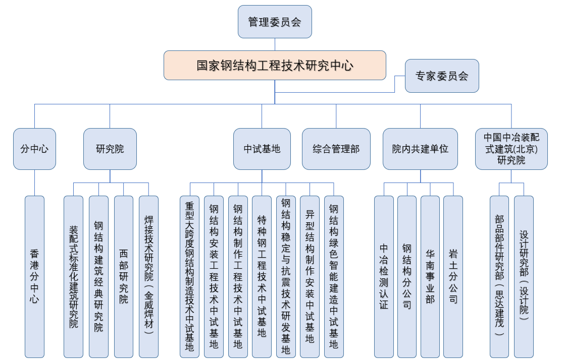 鋼結(jié)構(gòu)中心的組織機(jī)構(gòu)主要包括1個(gè)實(shí)體管理部門,1個(gè)分中心,4個(gè)研究院,7個(gè)中試基地,4家院內(nèi)共建單位,1個(gè)中國(guó)中冶研究院。這些分中心、研究院、中試基地的建成使鋼結(jié)構(gòu)中心與本領(lǐng)域的知名企業(yè)、學(xué)校、研究機(jī)構(gòu)建立了緊密長(zhǎng)期的合作關(guān)系,在鋼結(jié)構(gòu)工程技術(shù)領(lǐng)域的研發(fā)、中試及生產(chǎn)任務(wù)中發(fā)揮著重要作用,有力地推動(dòng)了新技術(shù)、新產(chǎn)品的產(chǎn)業(yè)化進(jìn)程。