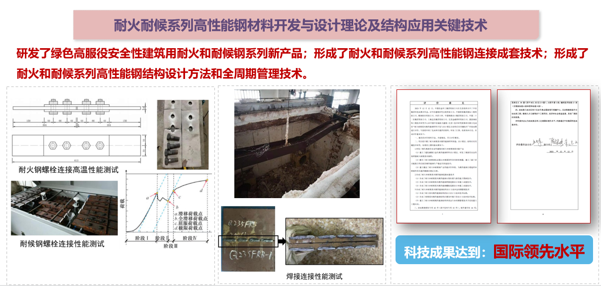 (2)高性能建筑結(jié)構(gòu)鋼材應(yīng)用關(guān)鍵技術(shù):針對(duì)各類新型高性能建筑結(jié)構(gòu)鋼材,包括高強(qiáng)結(jié)構(gòu)鋼、耐火鋼、耐候鋼、不銹鋼、高效截面型鋼、縱向變截面鋼板、軋制金屬?gòu)?fù)合板、高性能大直徑高強(qiáng)耐候索及配套的連接材料,提出了材料、構(gòu)件、連接節(jié)點(diǎn)和結(jié)構(gòu)體系等的性能指標(biāo)和設(shè)計(jì)理論及方法,提供面向工程應(yīng)用的關(guān)鍵技術(shù)。